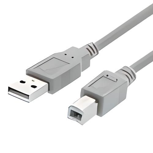 USB macho A a macho B, Velocidades de transmisión: 480Mbps, Calibre del cable: 30 AWG, Diámetro exterior: 4,2mm, Material del conductor: Acero revestido de cobre, Revestimiento: PVC, Color: Gris, Longitud: 1,8m