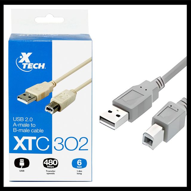 E993694C2D - XTECH XTC-302 Cable Para impresora USB-B a USB-A Gris 6 Pies